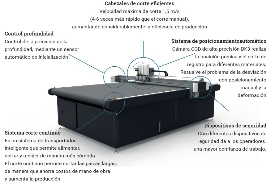 La fluidez del trabajo de producción automática se puede utilizar para la producción a tiempo completo (NON STOP), cumpliendo los requisitos de alta eficiéncia, utilizando la capacidad máxima de la máquina para realizar la producción en unas horas 24 horas. Con marcaje CE y certificado ISO 9001, permite optimizarsu sala de corte con un producto de altísima calidad y a un precio sin competencia.